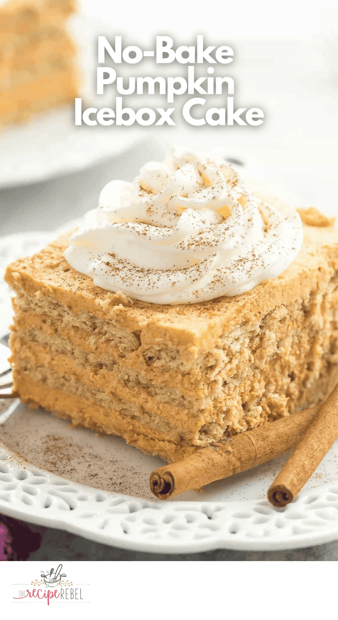 This Pumpkin Pie Icebox Cake is the perfect easy, no-bake dessert for all your fall gatherings. It has only a few ingredients and is easy to make ahead. Layers of spiced pumpkin filling and crisp graham crackers meld together to create a creamy, dreamy slice of autumn bliss. No oven, no problem!