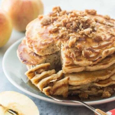 Oh, my gosh! Apple crisp is my all time fave dessert, and to combine that with pancakes is genius! Cannot wait to try these! Thanks for this!