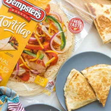 Quesadillas are one of our favorite easy meals (especially when the fridge is stocked with Dempster’s™ tortillas!) — you can stuff them with anything you have in the fridge and they are ready in just a few minutes. Basically – top, fold and heat! It doesn’t get much easier than that.