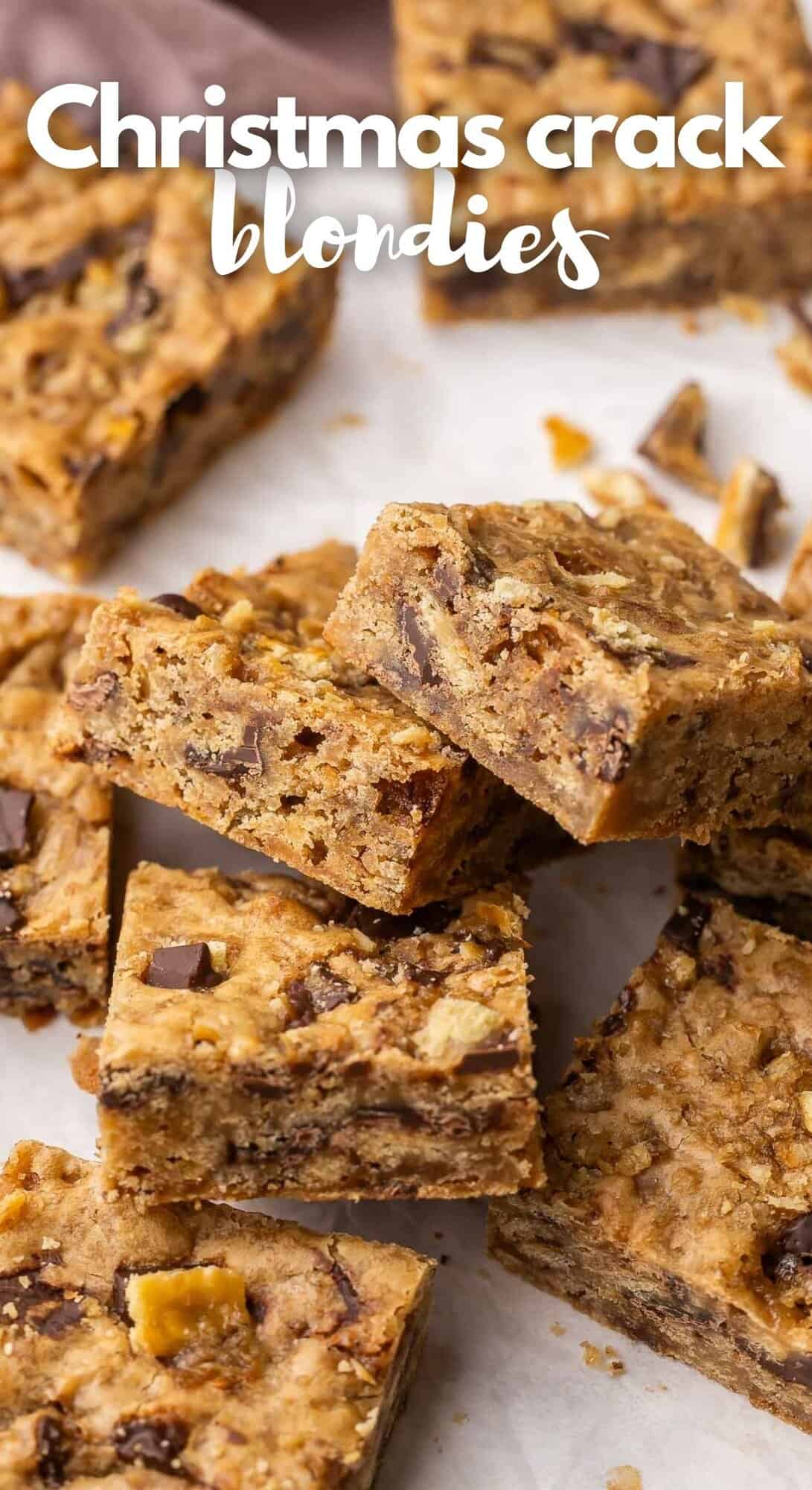Yes, you’ll need a batch of Christmas Crack ready to go, but trust me, it’s worth it. You’ll have plenty left for snacking, gifting, or making a double batch of these blondies.