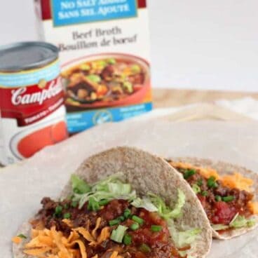 We love tacos at our house!! and currently, my girls are obsessed with hard taco shells . . but we eat both, tortillas and hard shell tacos. . these look fabulous! Wow! never thought to add Campbell’s® Tomato soup!!! Brilliant!!