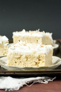 Ever since I found this recipe I’ve been wanting to make a poke cake completely from scratch. Who doesn’t love pudding poke cakes? Moist cake and moist pudding topped with fluffy whipped cream? Sign me up. And I’ve often made them using cake mix and pudding mix, as many poke cake recipes call for, but this cake recipe got me wondering….. How amazing could a poke cake be if you were to make a scratch cake and slather it with vanilla coconut homemade pudding? And then top it with whipped cream and toasted coconut? Let me tell you. Outstanding.