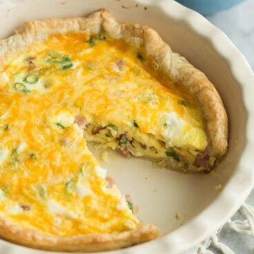 Delicious and easy! I shredded gruyere and used pre-sliced ham (it was what I had on hand) and it was really good! The only problem is I made it as a trial run for Easter and now I have all this yummy quiche and no one else here to eat it! I’ll definitely make it again on Easter morning. Thanks so much