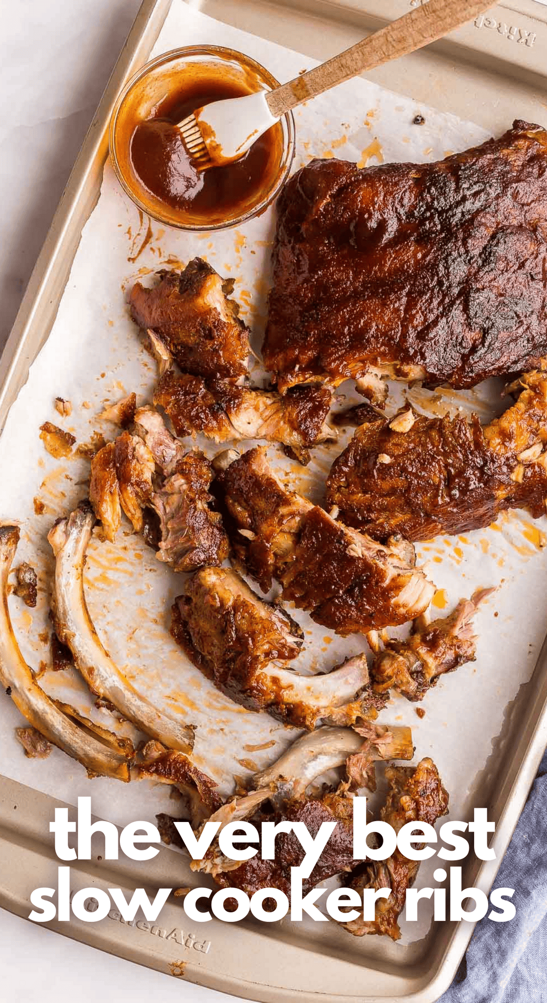 - Remove the ribs from the slow cooker, brush with the sauce, and grill for 5 to 6 minutes or broil for 2 to 3 minutes, until the sauce is sticky and slightly caramelized. This step is optional but adds great flavor! Serve.