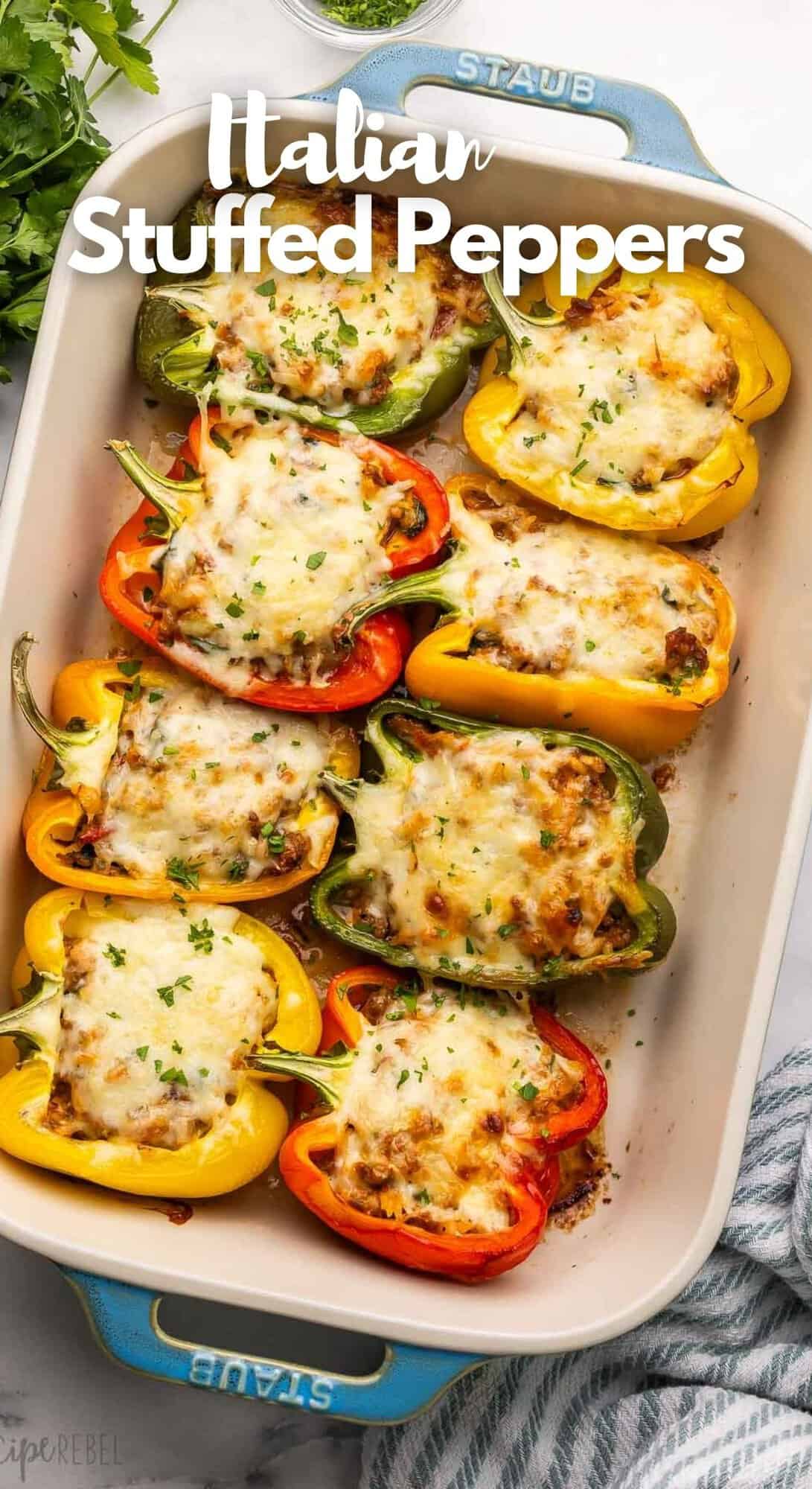 - Cover and bake until softened. Optionally, broil the peppers for a few minutes to brown the cheese!