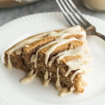 The 4 in 1 Panasonic is ALMOST as fabulous as this pancake. Almost, because ummm I don’t think anything is as amaze-balls as this pancake! Cinnamon roll, baked, healthier, cream cheese syrup and Pancake?! All that in one place??!! Girrrrrrl, you have outdone yourself! Pinned! Cheers, dear!