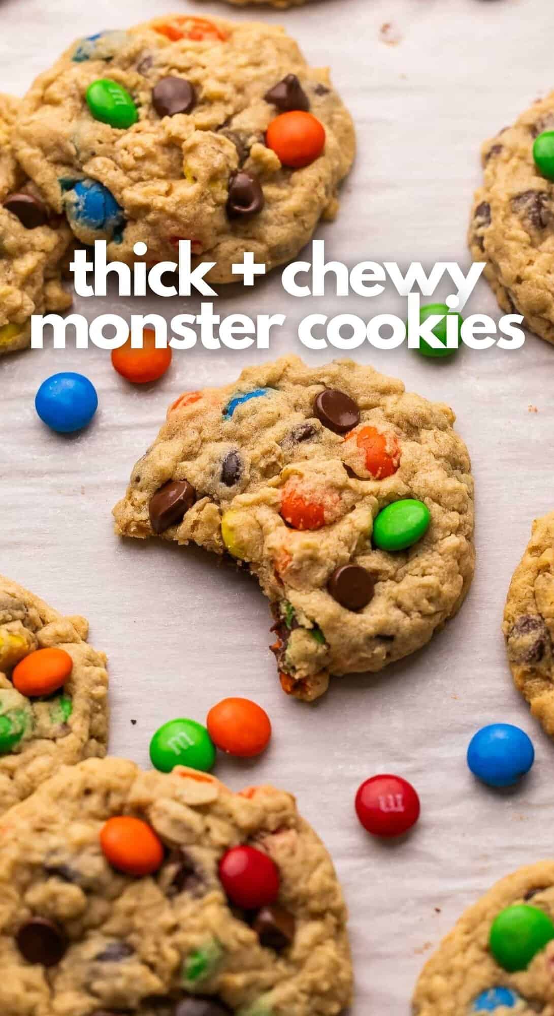 Classic Monster Cookies are loaded with creamy peanut butter, chewy old-fashioned oats, melty chocolate chips, and colorful M&Ms. They’re the perfect cookie for those who like a little bit of everything!