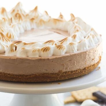 This No Bake S’mores Cheesecake is one of THE BEST cheesecakes I’ve ever made! A smooth chocolate marshmallow cheesecake on a graham cracker crust, topped with toasted homemade marshmallow cream!