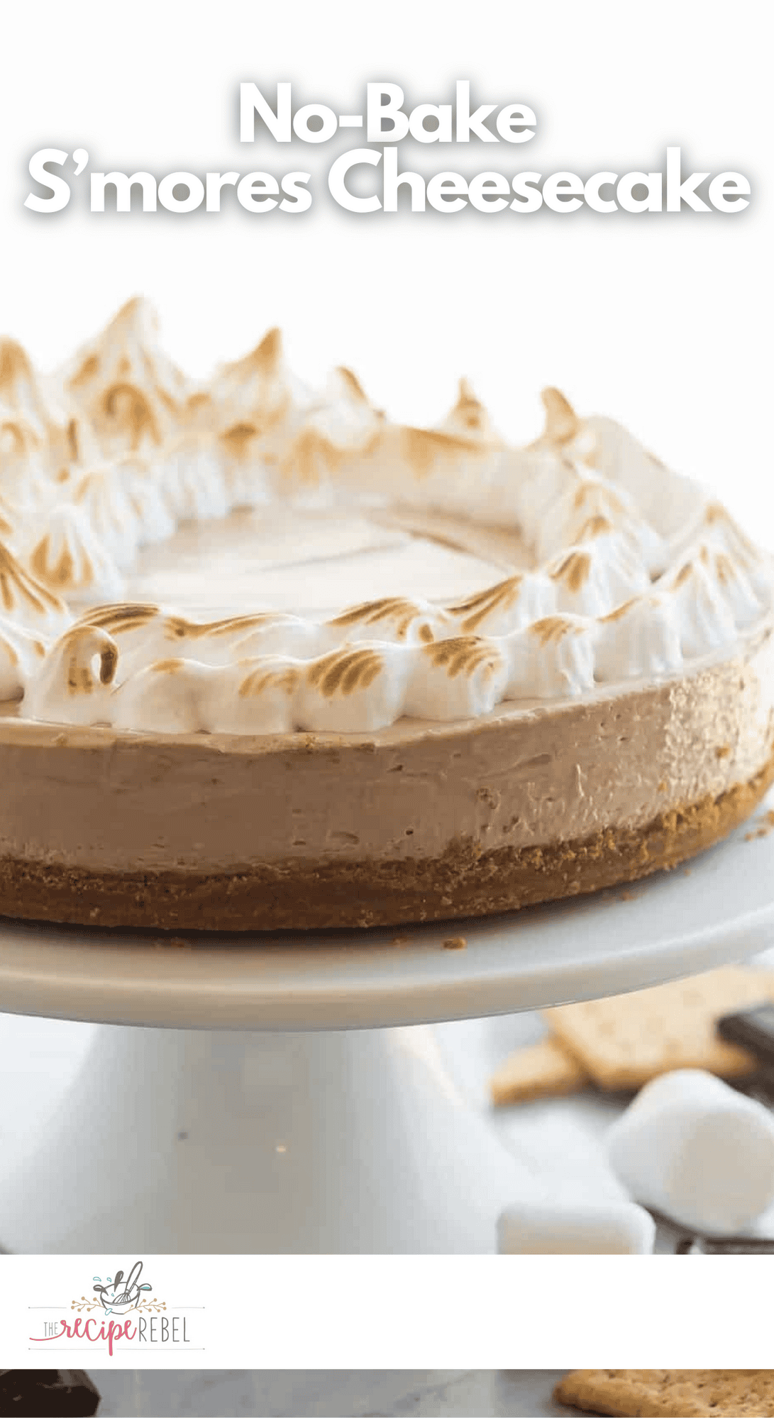 Most of my no-bake cheesecake recipes (like this No Bake Mint Chocolate Cheesecake and this No Bake Lemon Cheesecake) use gelatin to help them set and slice beautifully. For this s’mores version, I figured the melted chocolate and marshmallow would do the trick, since they both firm up when chilled.