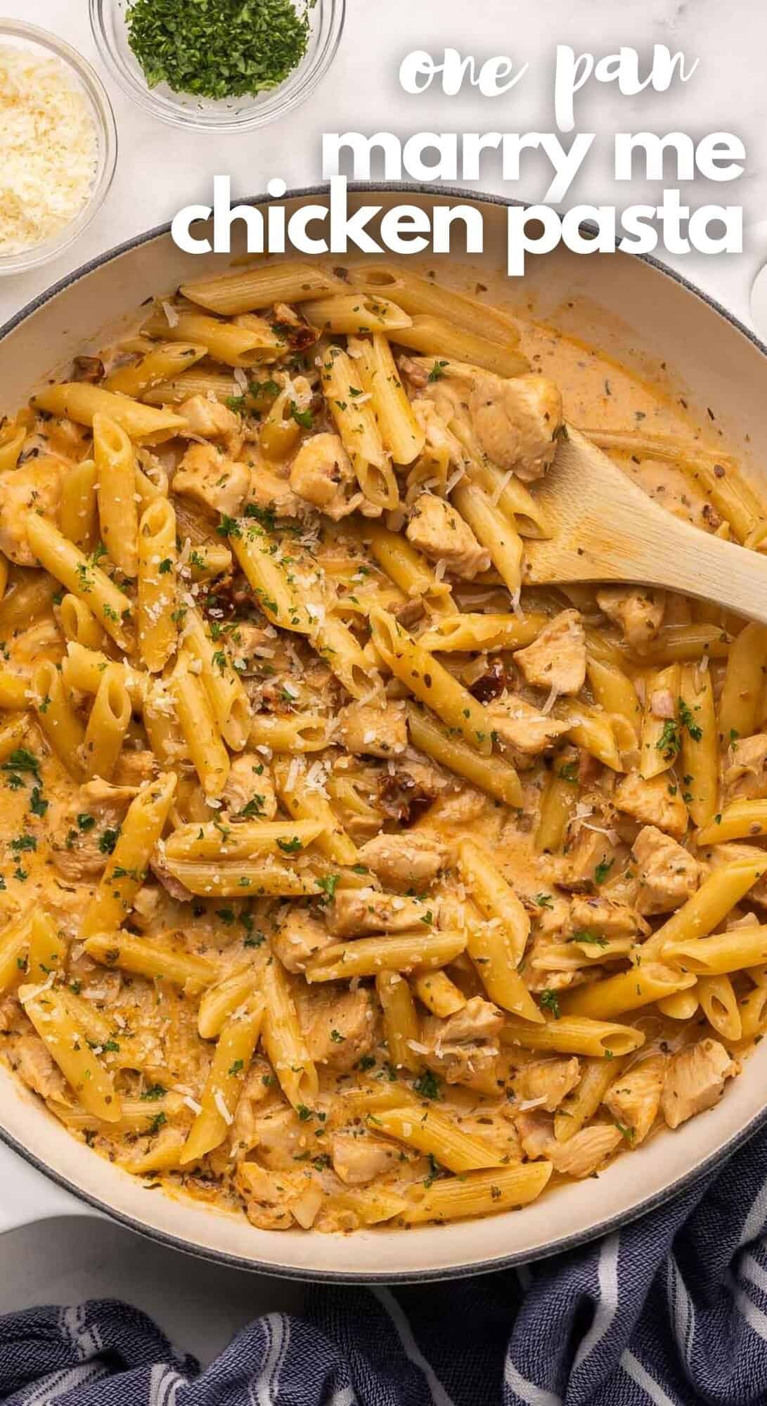 This One Pan Marry Me Chicken Pasta cooks everything right in one pot, even the pasta! No draining required.