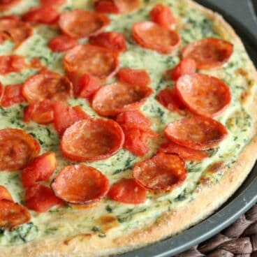 The creaminess of this sauce is such an awesome contrast to the spiciness of the pepperoni. And the tomatoes add a nice juicy bite and keep the texture interesting.