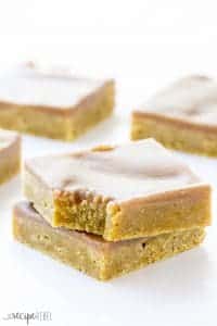 Perfectly dense, rich pumpkin blondies covered in a coffee and spice brown sugar glaze — the perfect fall bar! Great for your Pumpkin Spice Latte cravings or a Thanksgiving dessert!