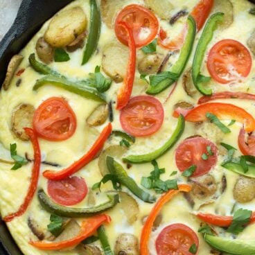 It’s holiday season, and people are stuffing themselves with delicious food non stop. To get all fueled up for a day of feasts, family and friends, surely they need a solid breakfast. This tortilla is such an awesome breakfast — it’s loaded with good-for-you vegetables (potatoes, peppers, onions), but you could add any that you like! Mushrooms, spinach — throw it all in!