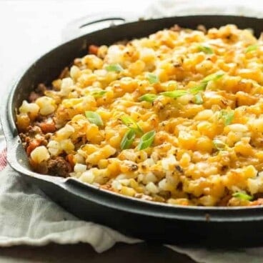 I love finding shortcuts for dinner, Ashley! I love taking my time to cook on the weekends, but during the week, I want something fast and easy. This skillet dish looks incredible! Frozen hash browns are one of my favorite quick ingredients to use, so this looks like it’s right up my alley!