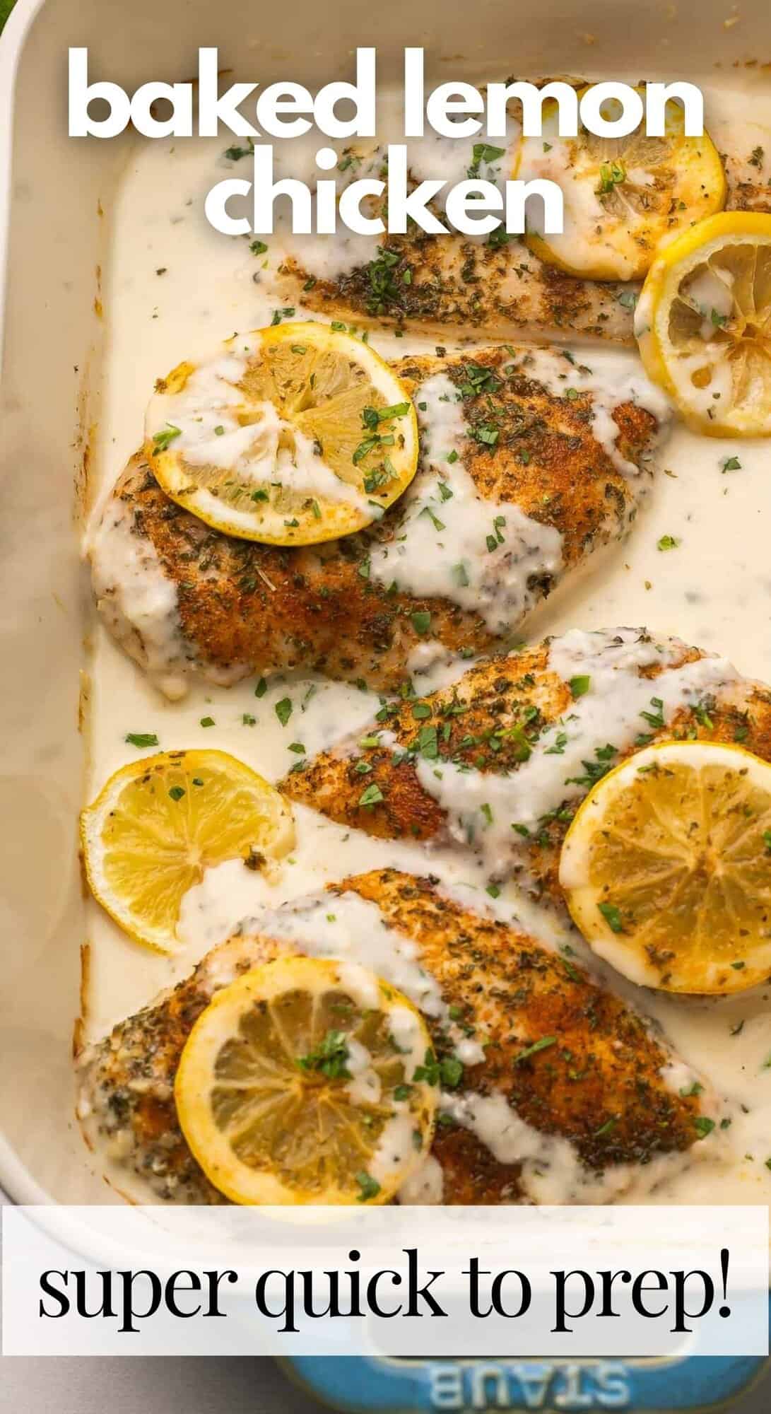 This creamy baked Lemon Chicken comes together in 30 minutes with simple ingredients and tons of flavor! Made with juicy, tender chicken breast baked in a garlicky lemon-Parmesan sauce.