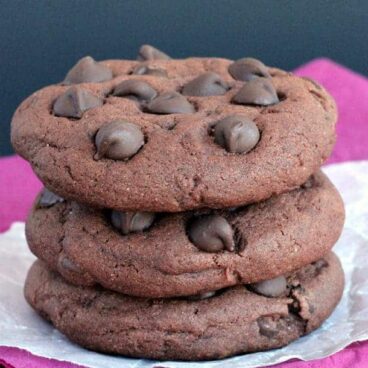 I saw the original recipe for these from Averie Cooks on Pinterest and knew I needed to try them. I made a couple swaps to make them  a little bit healthier, but they are still the best thick and chewy double chocolate cookie.